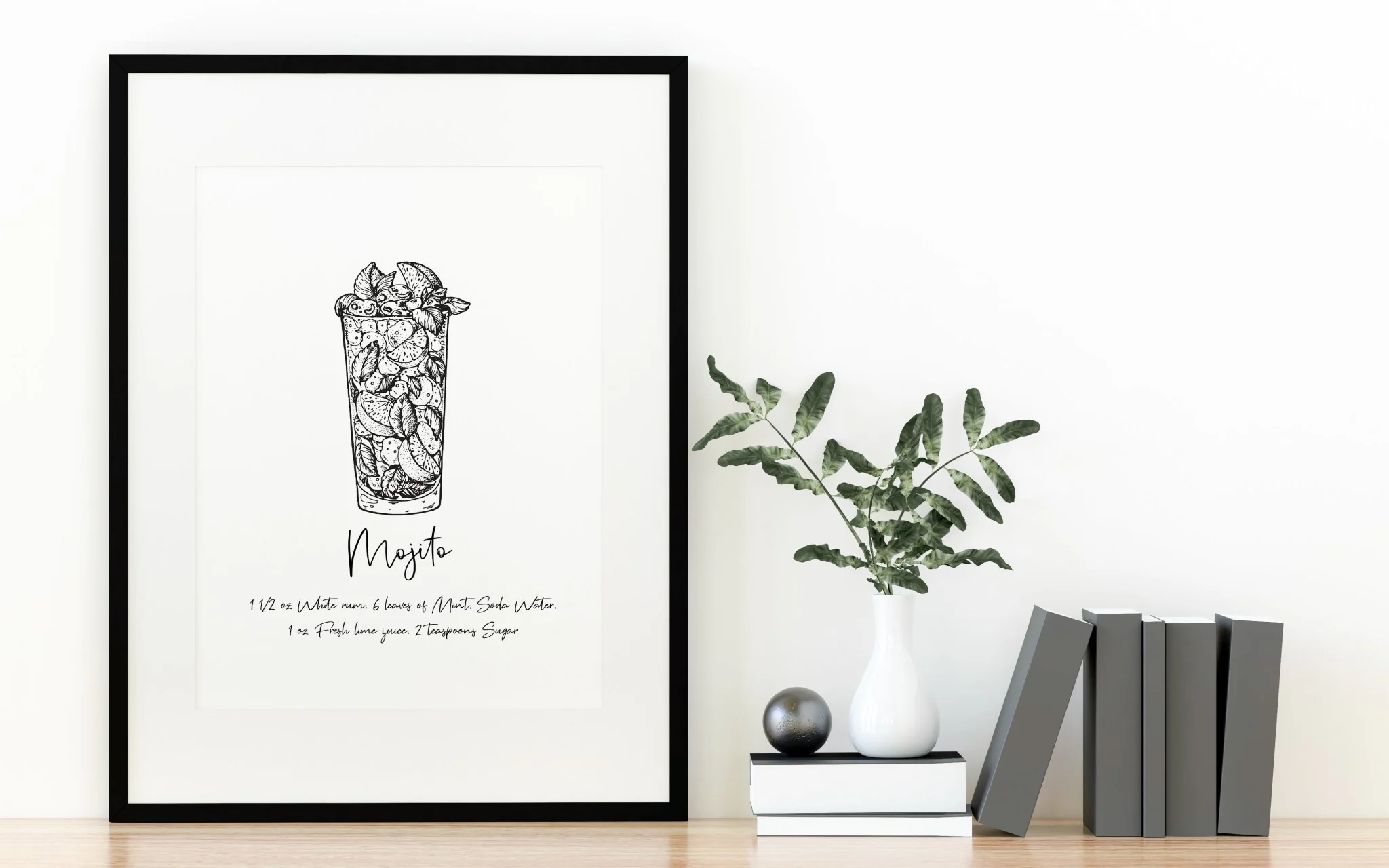 Our Mojito Cocktail Recipe Poster Print is part of our Kitchen Prints collection and is one of over 1,500+ unique wall arts that have been designed, printed & packaged by our in-house team ready for you to frame! Similar Cocktail prints include our Amaretto Sour Print, Aperol Spritz Cocktail Print & Bellini Cocktail Recipe Print.